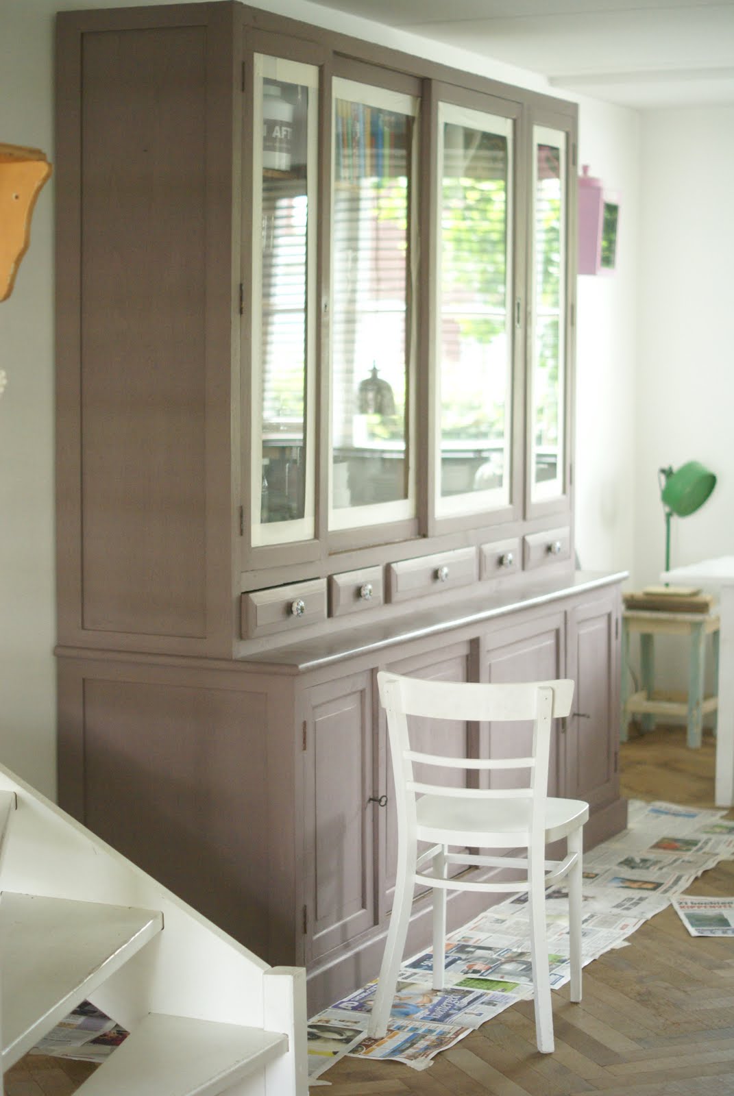 Last Friday, I thought, let's paint the cabinet now.